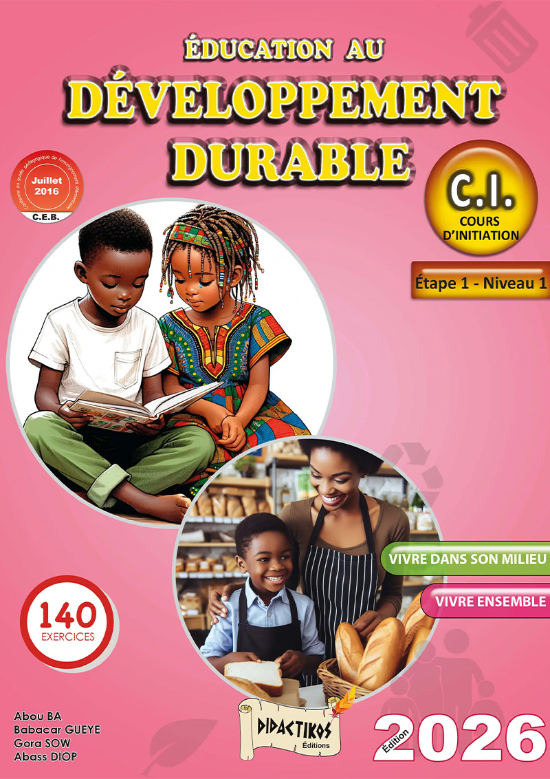 Comme tous les produits de Didactikos, ce manuel de développement durable destiné aux élèves de niveau 1 de l’étape 1 se veut conforme au programme pédagogique officiel du Sénégal en respectant l’approche par les compétences (APC) et la pédagogie par l’intégration préconisée dans le curriculum de l’éducation de base. Avec 113 pages qui prennent en compte les deux sous domaines que sont Vivre dans son milieu (VDSM) et vivre ensemble (VE), ce manuel constitue un support pédagogique d’une grande utilité aussi bien pour l’enseignant que pour l’élève.