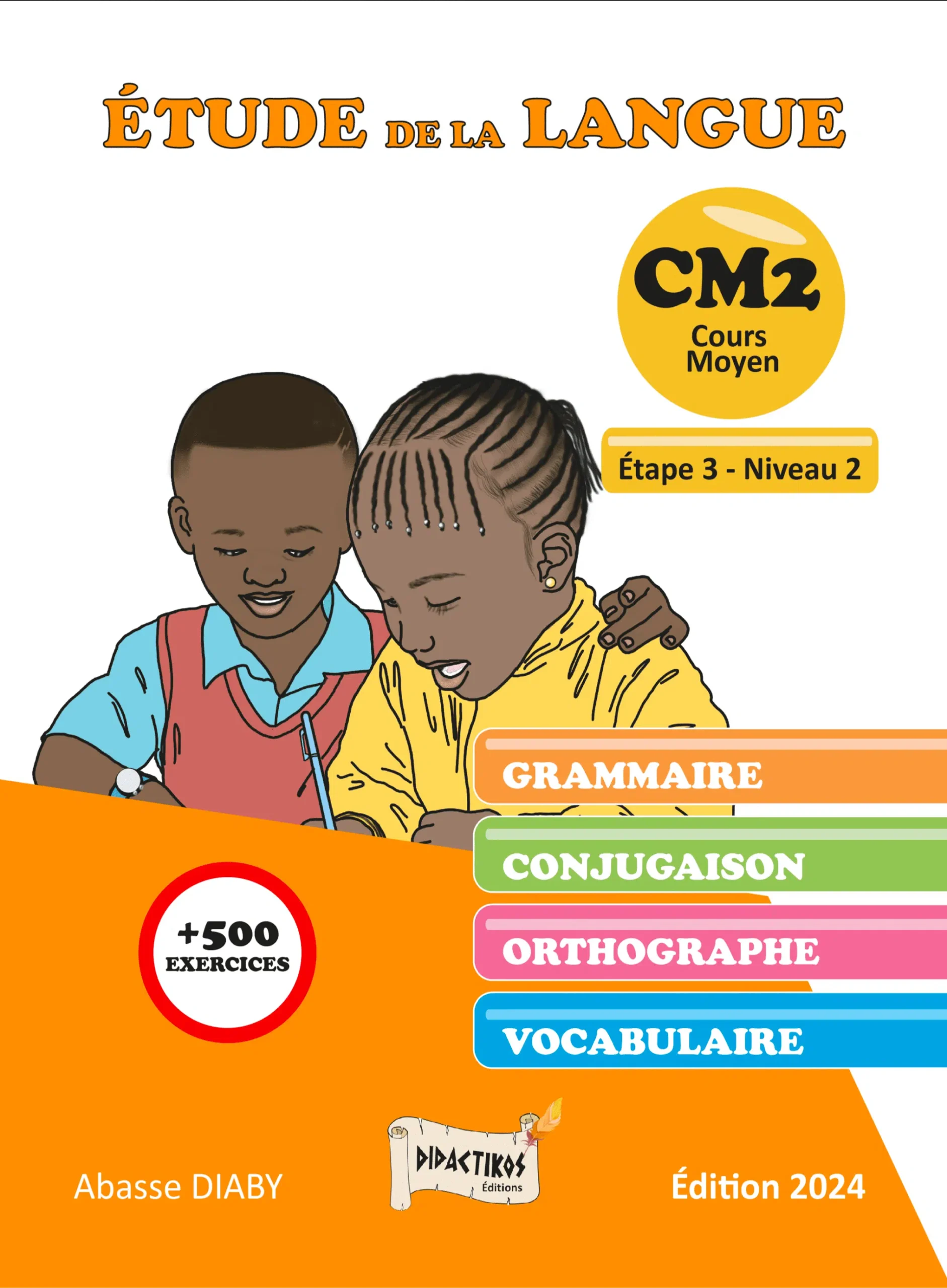 Un manuel complet d’Étude de la langue française pour les élèves de CM2, offrant plus de 500 exercices progressifs pour approfondir la grammaire, la conjugaison, l’orthographe et le vocabulaire selon le programme officiel sénégalais