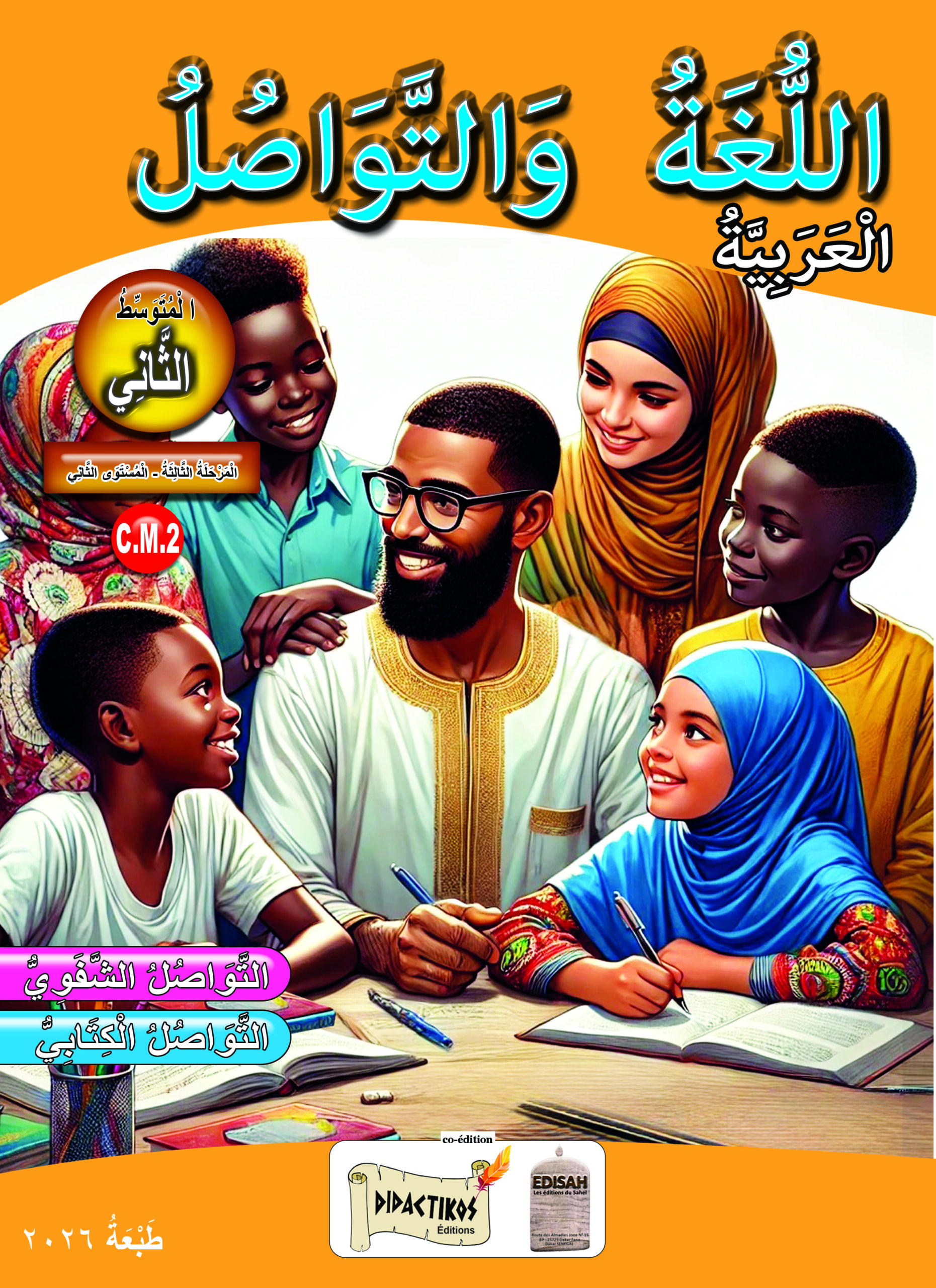 Manuel d’Arabe – Langue et communication pour les élèves de CM2, conçu pour renforcer leurs compétences en communication orale et écrite à travers des lectures, des dialogues et des exercices adaptés au programme officiel sénégalais.